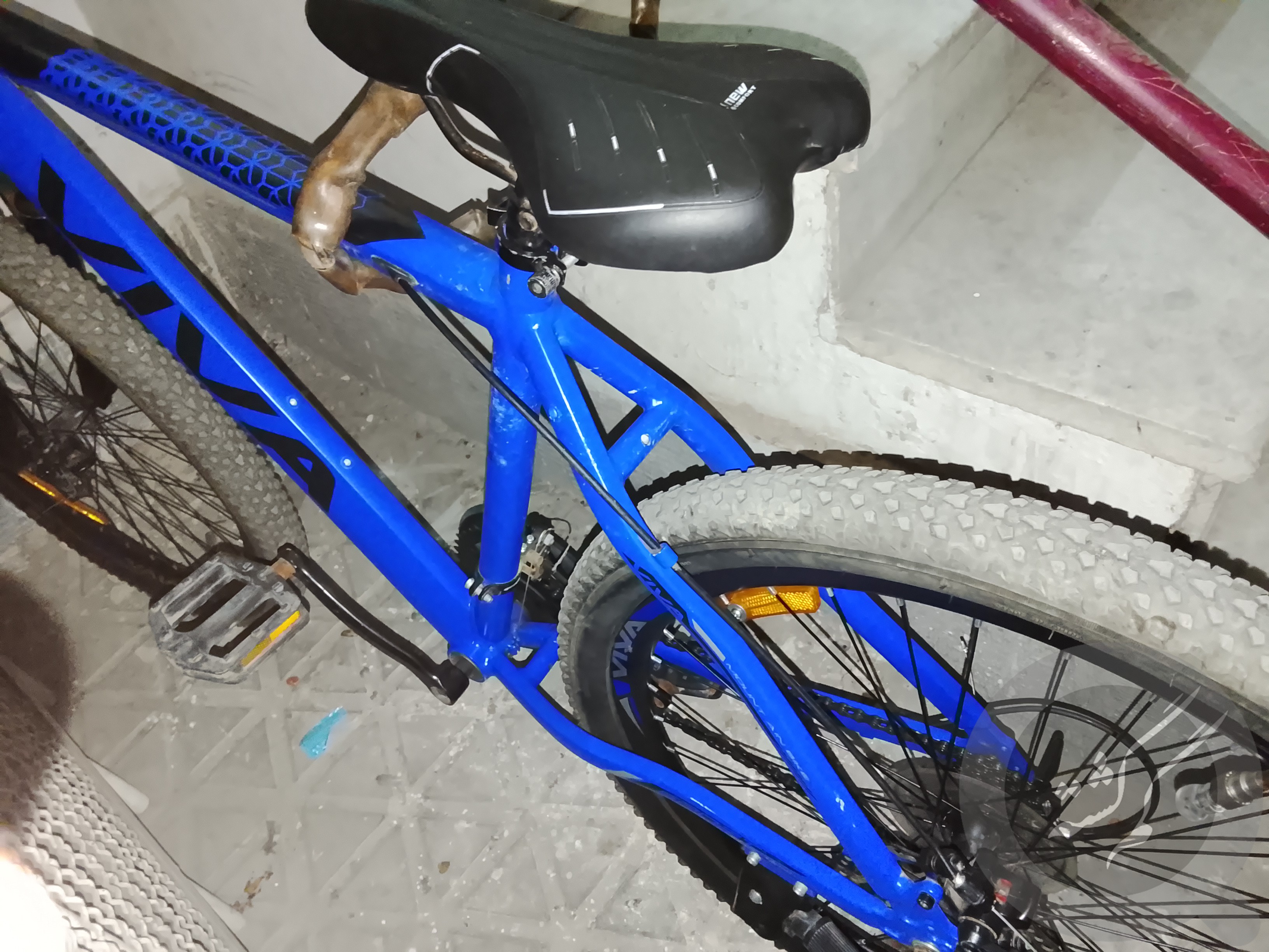 دوچرخه گمشده سایز ۲۶ رنگ آبی مشکی روی بدنه زدگی دارد مارک ویوا